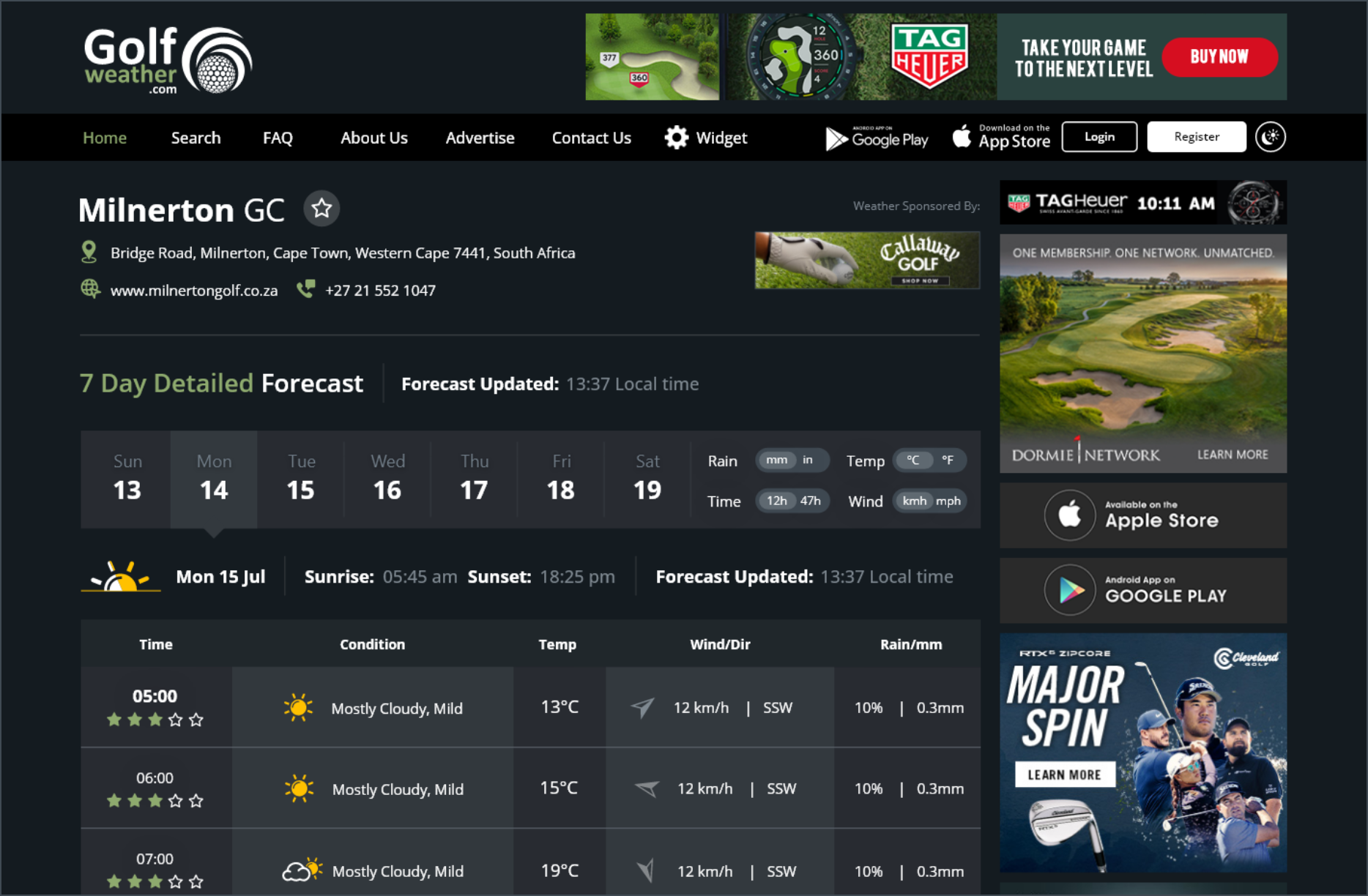 We have a weather widget which we provide courses at no cost to put on their websites. You can create your own widget by clicking here. Please email a request to support@golfweather.com and we will assist you if you want help or something customised.